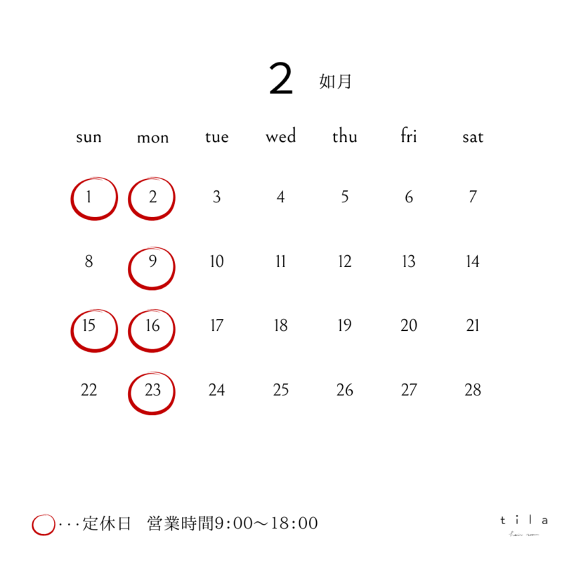 月曜日と、第一日曜日、第三日曜日が定休日となっております。