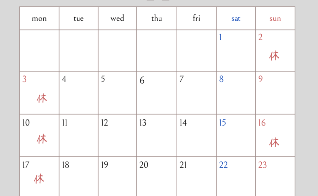 お休みのお知らせ 2025年9月のお休みのお知らせ いつもありがとうございます^^9月のお休みのおしらせです。遅くなってしまい申し訳ありません。第一日曜日、第三日曜日、月曜... 2025.09.11 お休みのお知らせ予約